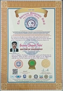 औटी ग्रुपचे संचालक गजानन डुबल यांना अमेरिका युनिर्व्हसिटीची पीएचडी